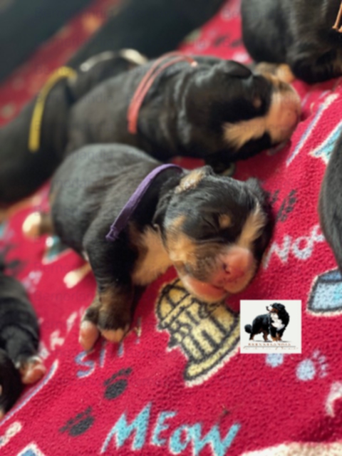 Steward (previous Biff), joined a mature household with seasoned Berner lovers. He will be their 5th Bernese in their household, however, there have been more over family generations. Stewarts family consists of 8 grown children with kids of their own, another Berner sister, and a young dachshund puppy. There will be no lack of engagement for this prince like puppy that always liked things his way.